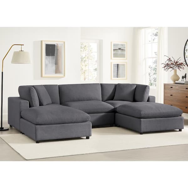 Casella 120 in. Square Arm 5-Piece Polyester Fabric Modular Chofa Sectional in Charcoal Fabric
