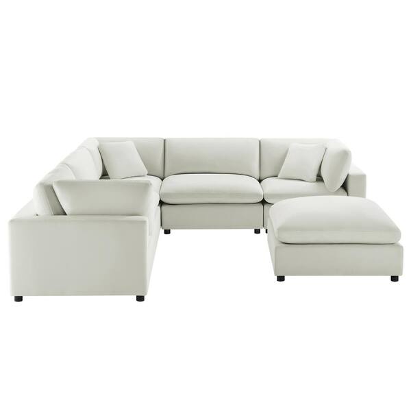 Casella 120 in. Square Arm 6-Piece Polyester Performance Fabric L-shape Sectional Sofa in Ivory