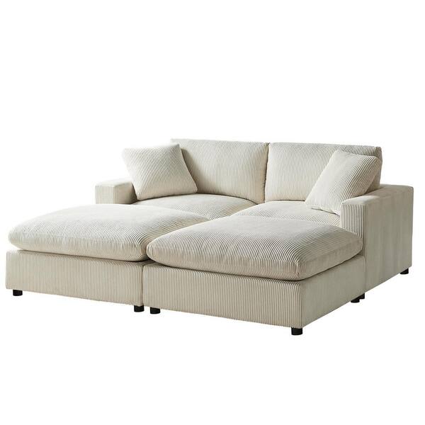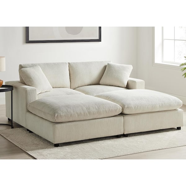Casella 80 in. Square Arm 4-Piece Corduroy Fabric Straight Sectional Sofa in Beige