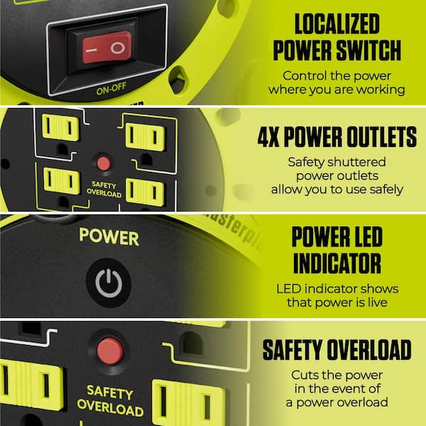 Cassette Reel 30 ft. 16 AWG/3 10 Amp Extension Cord Reel with 4 Grounded Outlets