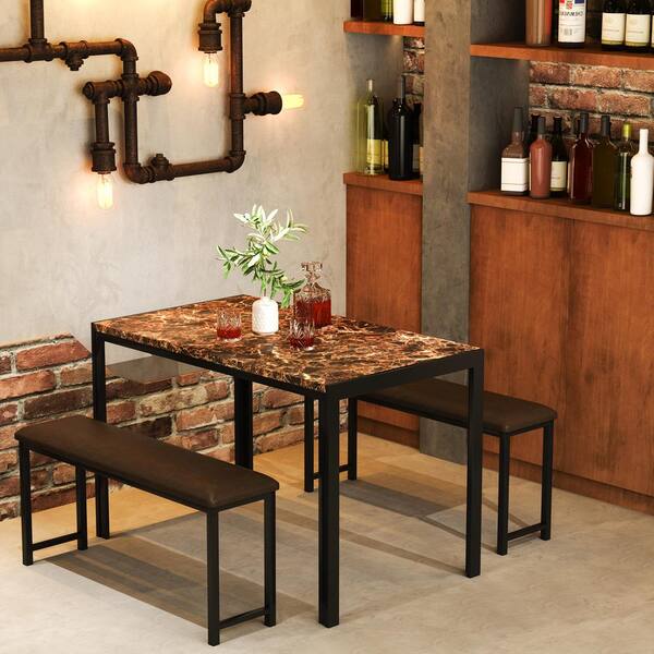 Cassie 3 - Piece Rectangle Wood Top Faux Marble Coffee and Black Dining Set