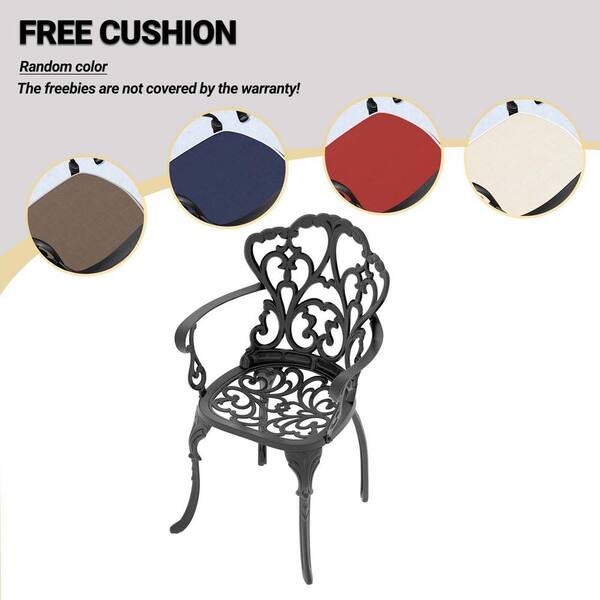 Cast Aluminum Outdoor Dining Chair All-Weather Patio Dining Chair Bistro Chairs with Cushion in Random Colors (6-Pack)