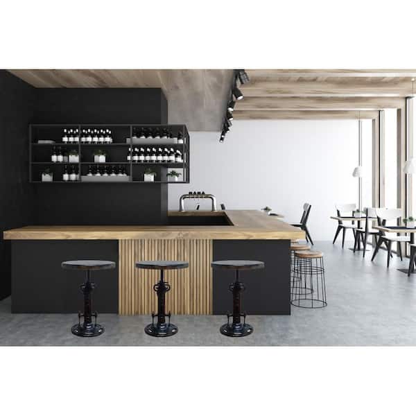 Cast Black and Walnut Iron Industrial Strong Wood Stool