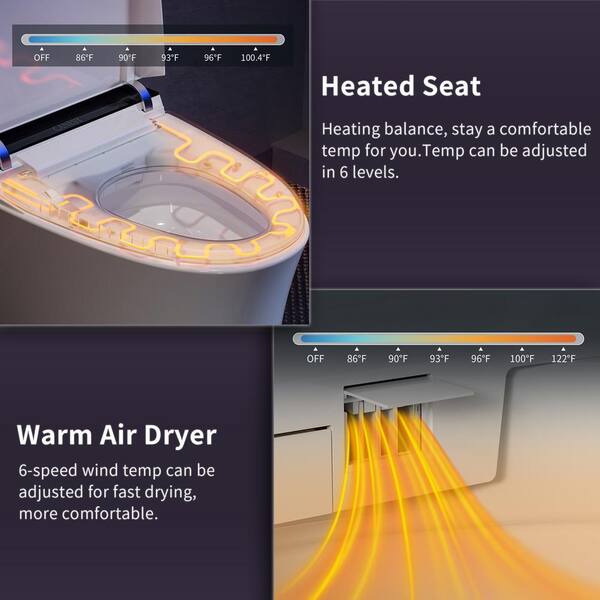 Elongated Electric Bidet Toilet 1.45/1.08 GPF in Black with Digital Display Auto Flush Heated Seat Dryer Soft Close