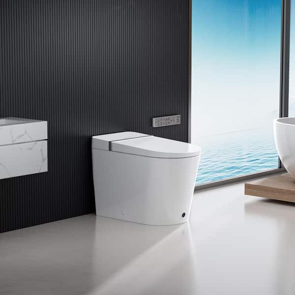 Elongated Electric Smart Bidet Toilet 1.28GPF in White with Auto Open/Close, Foot Sensor, Wider Seat, Auto/Backup Flush