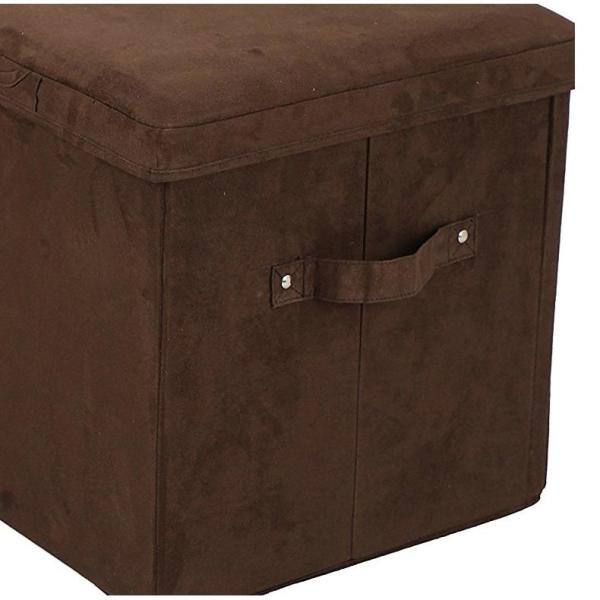 Brown Microsuede Folding Storage Bench