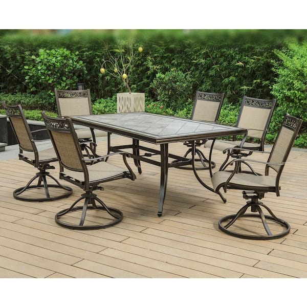 Casual World 7-Piece Aluminum Patio Dining Set, 6-Sling Swivel Chairs and Rectangular Dining Table with Umbrella Hole
