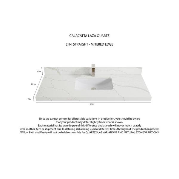 Catalina 60 in. W x 22 in. D x 36 in. H Single Sink Bath Vanity in White with 2 in. Calacatta Laza Quartz Top