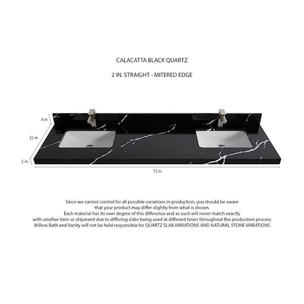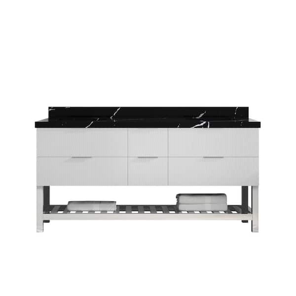 Catalina 72 in. W. x 22 in. D x 36 in. H Double Sink Bath Vanity in White with 2 in. Calcutta Black Qt. Top