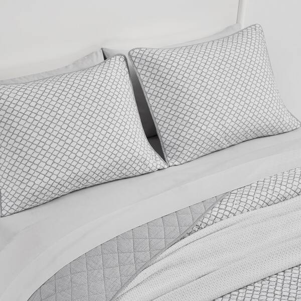 Catch And Release 3-Piece Gray Cotton Full/Queen Quilt Set