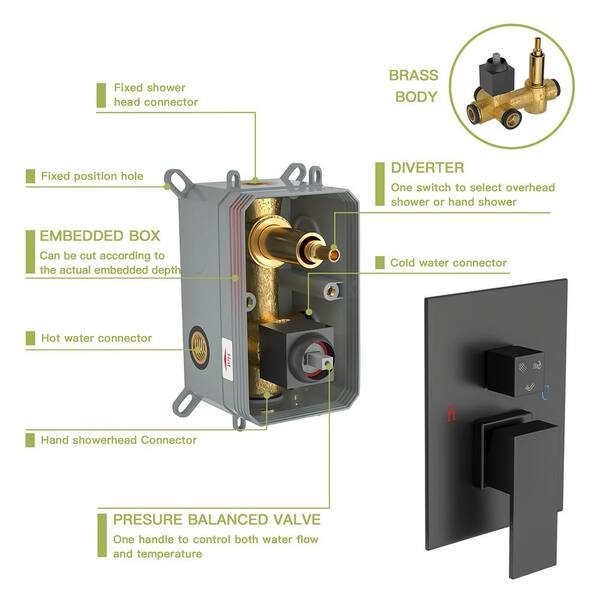 • Rain shower head with silicone sprayer for easy cleaning
