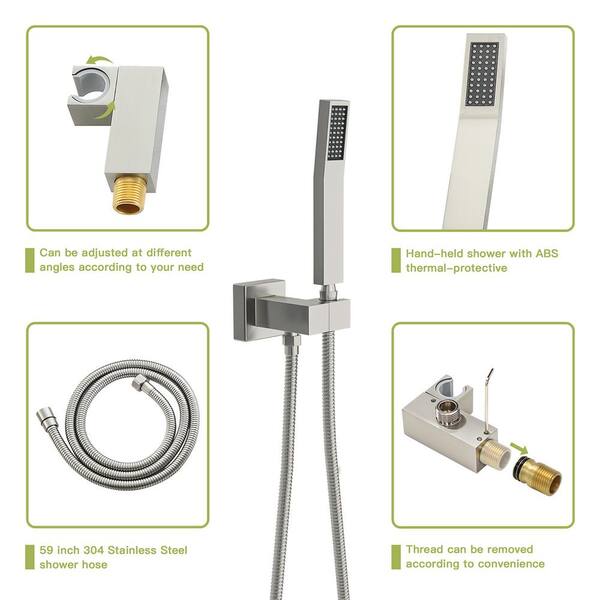 Ceiling Mount 16in. Single Handle 1-Spray Tub and Shower Faucet 1.8GPM with Shower Head in Brushed Nickel Valve Included
