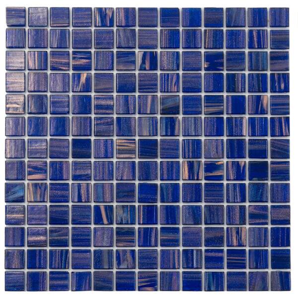 Celestial 4" x 6" Glossy Royal Blue and Gold Glass Mosaic Uniform square Wall and Floor Sample Tile 0.13 sq. ft./1-Pack