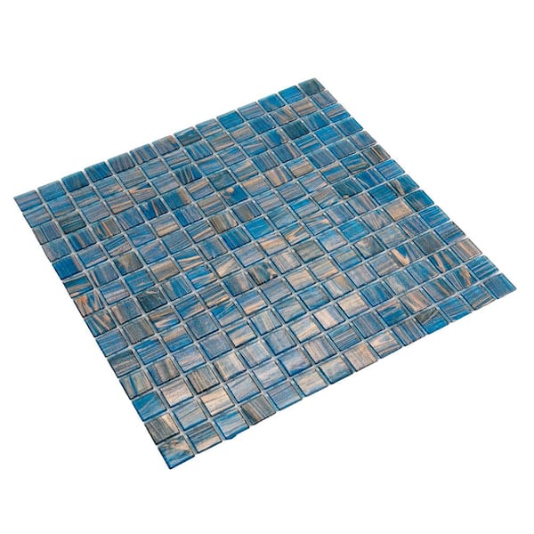 Celestial 4" x 6" Glossy Yale Blue and Gold Glass Mosaic Uniform square Wall and Floor Sample Tile 0.13 sq. ft./1-Pack