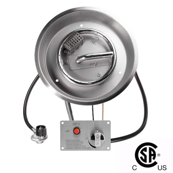 12" Round CSA Certified Fire Pit Burner Kit, Stainless Steel, Propane, Electronic Ignition