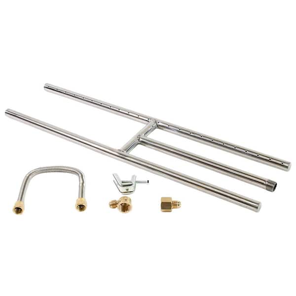 24 in. x 6 in. Stainless Steel H-Burner, Natural Gas with Non-Whistle Flexible Gas Line and Brass Fittings