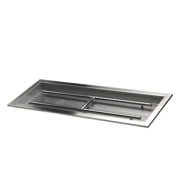 30 in. x 10 in. Linear Drop-In Fire Pit Pan with Burner, Stainless Steel, and Beveled Lip