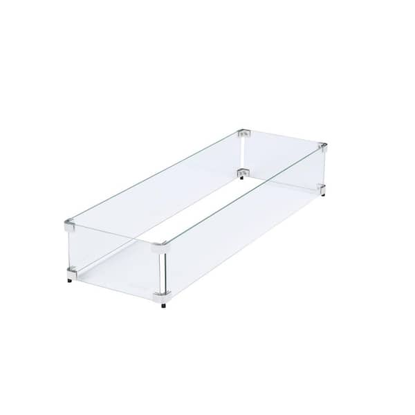 35.5 in. x 11.5 in Tempered Glass Fire Pit Wind Guard for 30 in. x 6 in. Rectangular Drop-In Fire Pit Pan