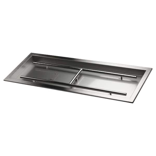 36 in. x 12 in. Rectangular Stainless Steel Fire Pit Pan with Burner, Beveled Lip