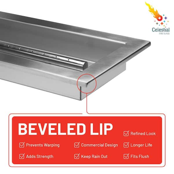 48 in. x 6 in. Stainless Steel Drop-In Fire Pit Pan with Burner, Beveled Lip