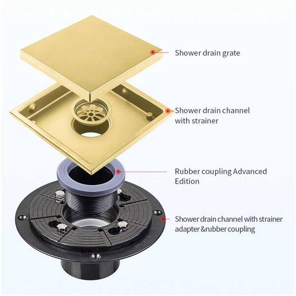 Celian 6 in. Square Shower Floor Drain in Brushed Gold