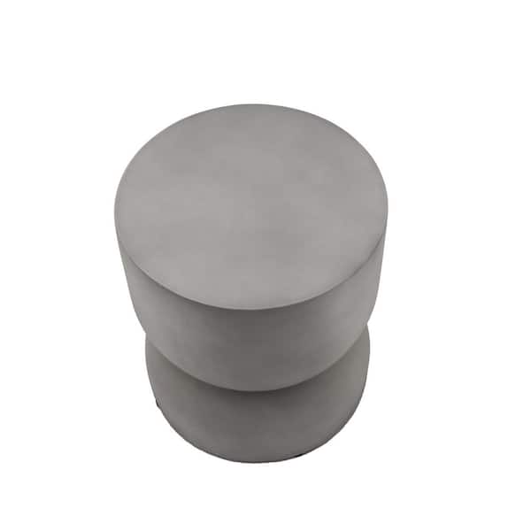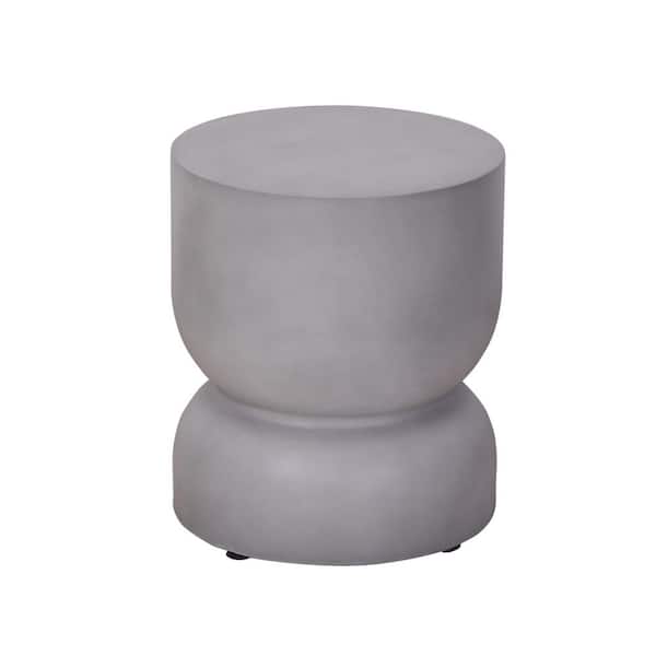 Cement Gray Round Concrete Faux Wood 14.6 in. D x 17 in. H Outdoor Side Table End Table