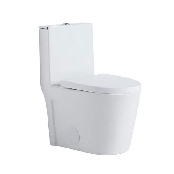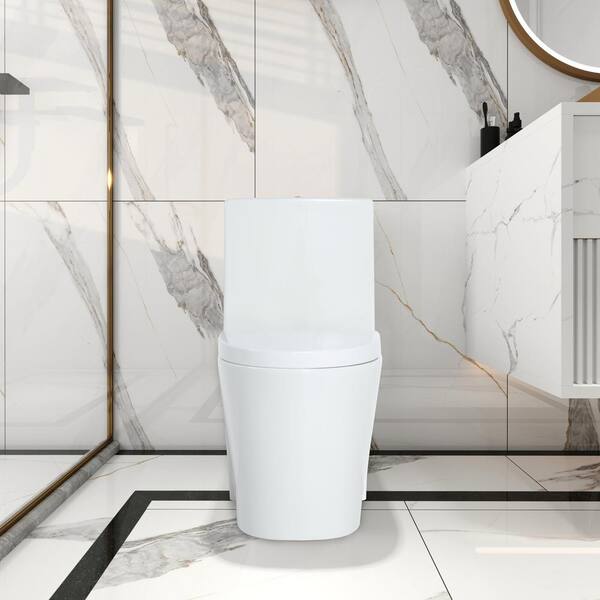 Ceramic One-Piece 1.28 GPF Dual Flush Elongated Toilet in Gloss White