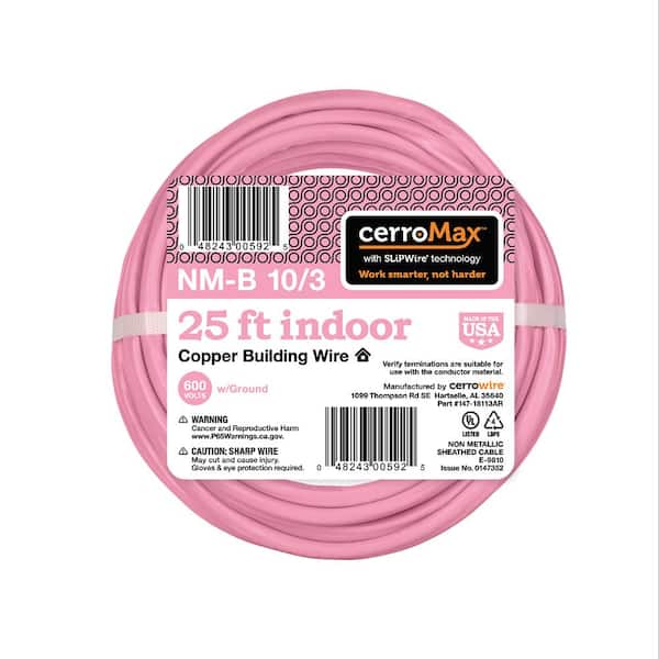 25 ft. 10/3 Pink Solid CerroMax SLiPWire Copper NM-B Wire