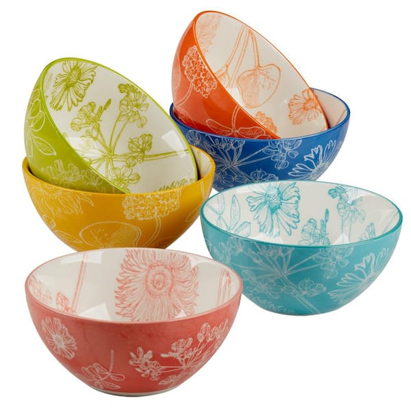 Botanical 12.46 fl. oz. Multi-Colored Porcelain Bowl (Set of 6)