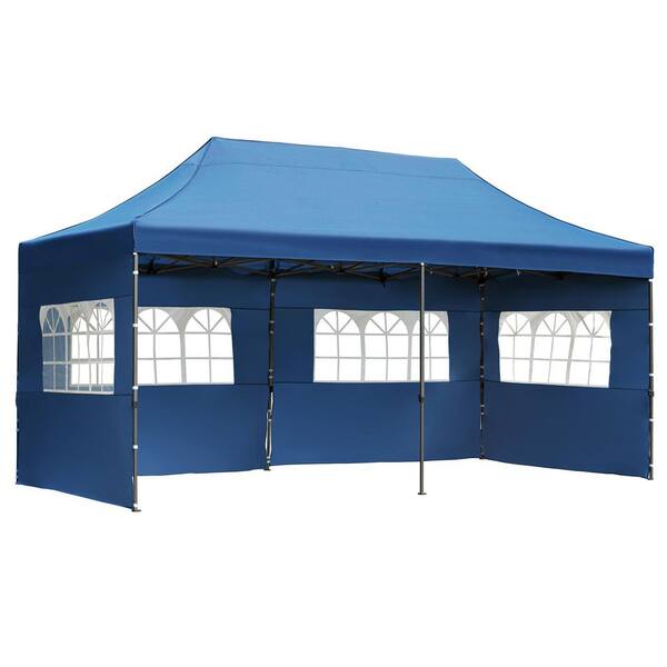 10 ft. x 20 ft. Blue Pop Up Canopy Tent with Sidewalls for Backyard Wedding and Party