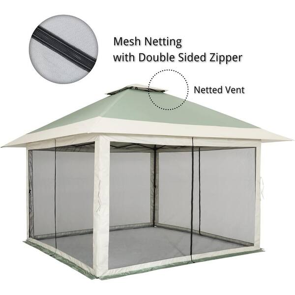 13 ft. x 13 ft. Green Pop Up Gazebo Canopy Tent with Solar LED Lights and Zippered Mosquito Netting