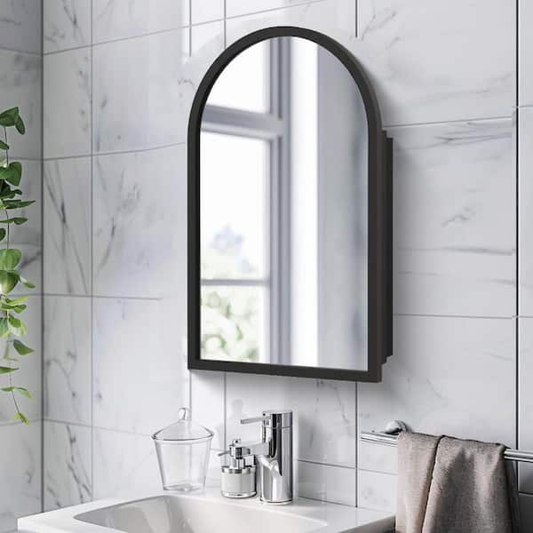 16 in. W x 30 in. H Arched Black Metal Framed Wall mount or Recessed Bathroom Medicine Cabinet with Mirror
