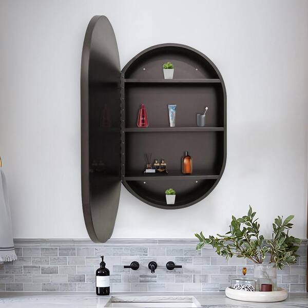 21 in. W x 31 in. H Oval Black Framed Surface Mount Bathroom Medicine Cabinet with Mirror