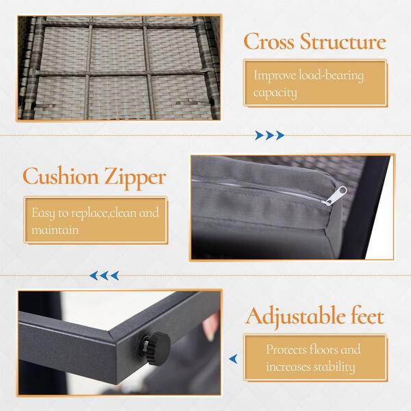 3-Piece Gray Wicker Patio Conversation Set with Gray Cushions and Side Table