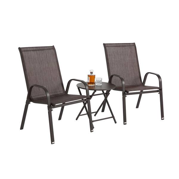 3-Piece Metal Patio Conversation Set with Folding Table and Brown Textilene Fabric