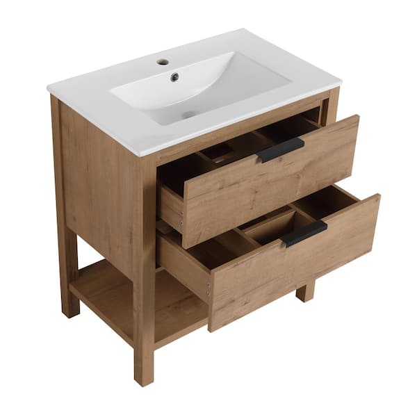 30 in. W x 18.3 in. D x 33.5 in. H Single Sink Bath Vanity in Imitative Oak with White Ceramic Top and 2-Drawers