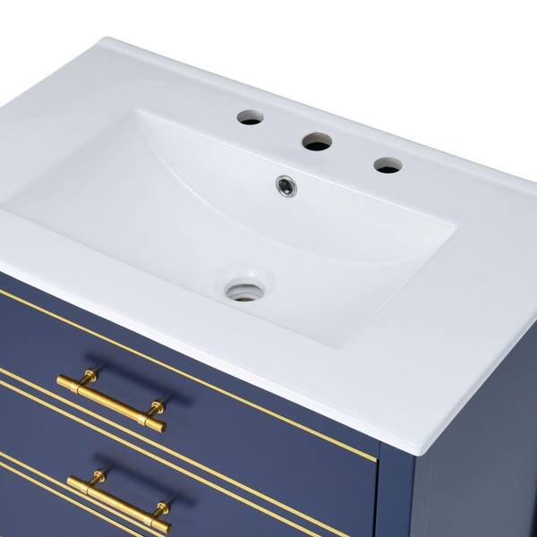 30 in. W x 18 in D. x 34 in. H Bathroom Vanity in Blue with Open Storage, 2-Drawers and White Ceramic Sink Top
