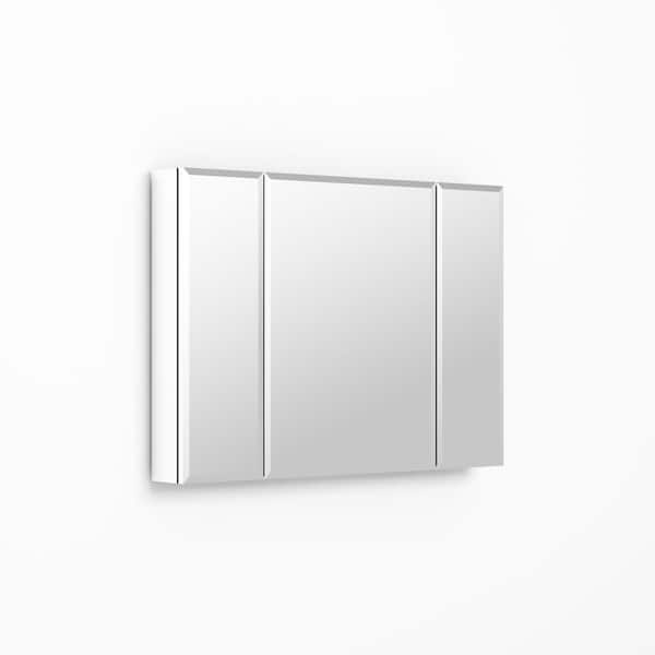 36 in. W x 26 in. H Rectangular Silver Aluminum Surface Mount 3 Doors Bathroom Medicine Cabinet with Mirror