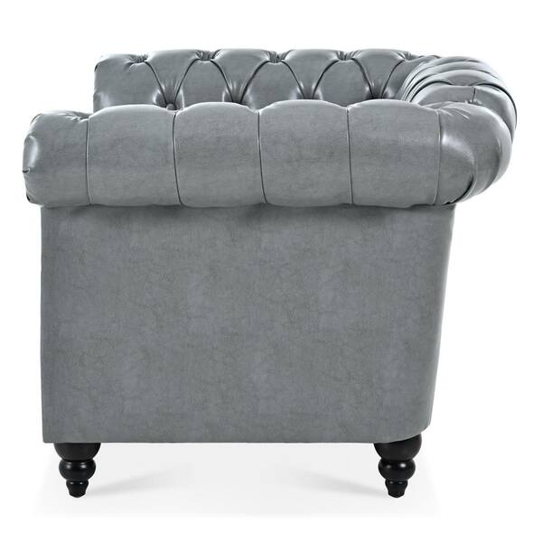 38.98 in. W Rolled Arms PU Leather Rectangle Classic Tufted Button 1 Seater Sofa in Gray