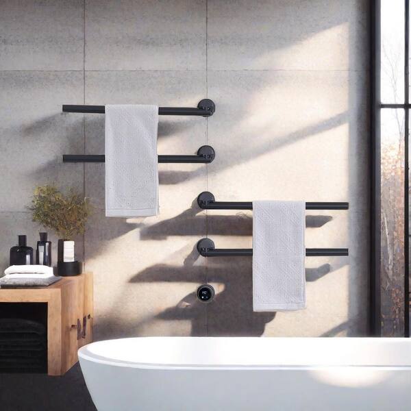 4-Bar Plug-In/Hardwired Swingable Wall Mounted Electric Towel Warmer Rack in Matte Black
