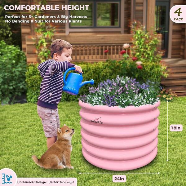 4-Pack 24 in. x 24 in. x 18 in. Outdoor Round Pink Galvanized Steel Elevated Raised Bed for Vegetables Flowers Herbs