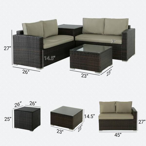 4-Piece Brown Wicker Patio Conversation Sofa Seating Set with Khaki Cushions