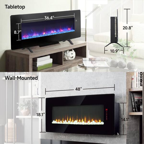 48 in. 5000 BTU Curved Front Wall Mounted Electric Fireplace with Remote and Multi Color Flame and Emberbed