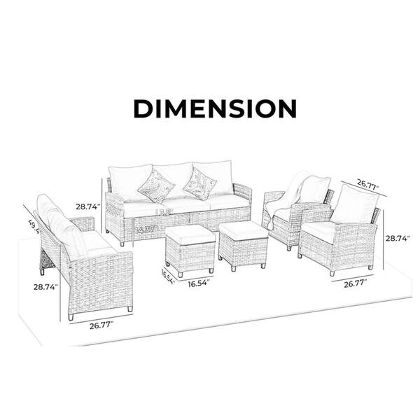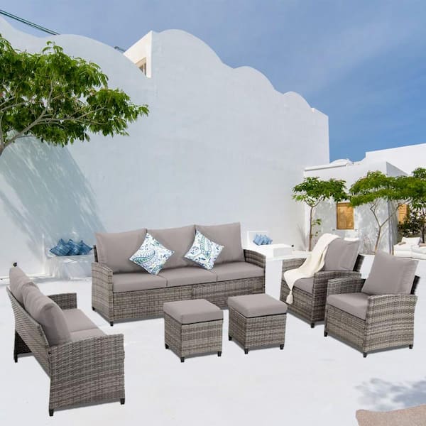6-Piece Gray Wicker Outdoor Sectional Set with Gray Cushions