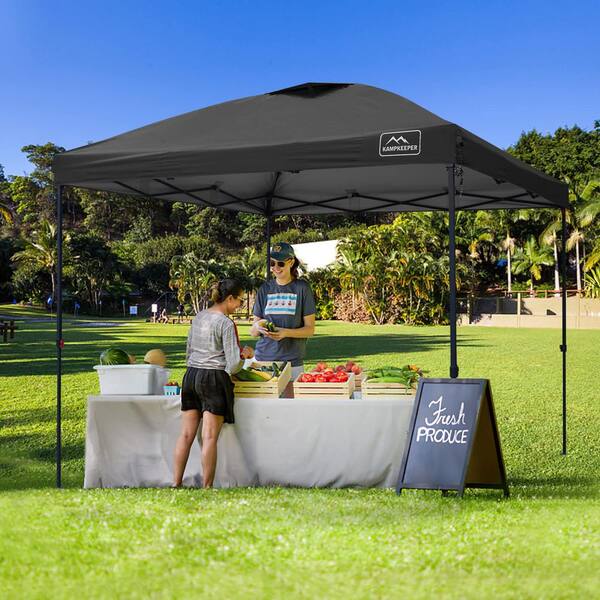 Black 10 ft. x 10 ft. Waterproof Pop-Up Canopy Tent with 3 Adjustable Height and Wheeled Carrying Bag