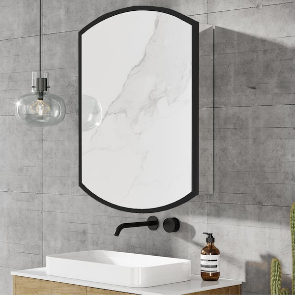 Black 16 in. W x 26 in. H Surface or Recessed Mount Rectangular Aluminum Curved Medicine Cabinet with Mirror