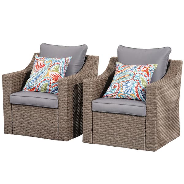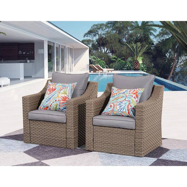 Brown 2-Piece Wicker Outdoor Sectional Set with Gray Cushions