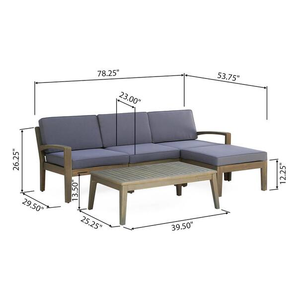 Brown 3-Piece Wood Outdoor Chaise Lounge with Grey Cushions