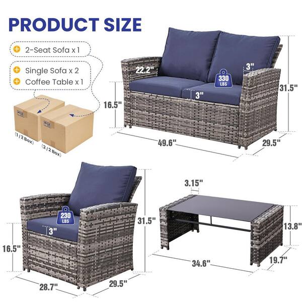Gray Wicker Outdoor Sectional Set with Blue Cushions