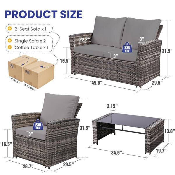 Gray Wicker Outdoor Sectional Set with Gray Cushions